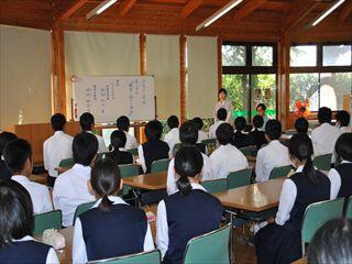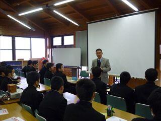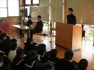 1月27日(木)に、1、2年生を対象に、昨年度の本校の卒業生、美坂愛奈さん(龍桜高等学校看護科)西野未宇さん(宮崎日大高等学校英進科)、平美奈人さん(宮崎学園高等学校特進科)をお招きして、卒業生の進路に学ぶ会を行いました。事前にみなさんに書いてもらった質問事項をもとに、日々の授業のことや学校行事のこと、部活動や寮生活のことなどを分かりやすく話してくれました。今のうちから自分の将来について考えることはとても有意義なことです。先輩方のお話を参考にして、日々の学校生活を充実させてほしいです。