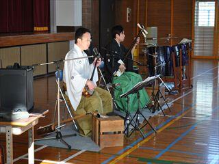 12月9日水曜日の2、3校時に、「しゃみせんいろいろ スーパーセッション!!」と題して鑑賞教室が行われました。三味線奏者「新田昌弘さん」「上原潤之助さん」、和太鼓演奏者の「しんたさん」と、いずれも日本国内外で活躍されている演奏者をお招きし、日本の伝統的な和楽器の独特の音色とリズムを堪能たんのうしました。演奏もさることながら、3人のトークもなかなか面白かったですね。また、各クラスから代表者が出て実際に和太鼓を体験するコーナーもあり、盛り上がりました。和楽器に触れたり、生演奏で聞く機会というのはなかなかないので、これを機に日本伝統の和楽器に興味を持つ人が増えてくれればと思います。