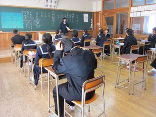 12月18日(金)、県立飯野高等学校で、えびの市中学校2年生の集合学習会が行われました。飯野高校の先生方による体験授業や飯野高校紹介、施設見学及び部活動見学等ありました。体験授業は、英語・理科・国語・家庭(希望者のみ)で、生徒たちは、「丁寧で分かりやすい授業だった。」「楽しくて、一人一人を大切にしてくださる先生方だった。」「時間があっという間に過ぎてしまった。」などと感想を述べていました。飯野高校紹介では、進路決定者の話があり、本校卒業生の橋爪くんが生徒代表の一人として発表してくれましたが、自分の経験を交えての話で、飯野高校の良さをたくさん知ることができ、生徒たちも興味をもって話を聞いていました。施設見学及び部活動見学では、本校卒業生の高校3年生4名(岡園くん、鬼川くん、有川さん、竹野さん)が案内してくれました。校舎内もきれいで、たくさんの部活動があり、興味が沸いてきた生徒も多かったです。