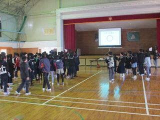 2月5日(金)は、第2回小6体験授業・新入生説明会がありました。加久藤小学校の6年生が中学校に来て、授業を受けたり中学生と交流をしたりする行事で、6年生のほとんどがこの体験授業を楽しみにしていたようです。午前中は中学校の先生から授業を受け、どの授業も真剣に取り組んでいました。午後は中1交流会、新入生説明会、部活動見学・体験という内容でした。交流会では中1と一緒に加久藤中に関する○×ゲーム、部活動体験ではそれぞれの部での活動と、小学生との交流が深められ、充実した1日になりました。