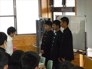3月8日(火)に、1、2年生を対象に、昨年度の本校の卒業生、織田龍紀君(小林高校普通科探究科学コース)、上野光志郎君(飯野高校普通科)、尾座原大君(小林秀峰高校機械科)をお招きして、卒業生の進路に学ぶ会を行いました。1月末にも、私立高校に進学した先輩方をお招きしてお話を聞きましたが、前回とはまた違ったお話が聞けましたね。ぜひ、先輩方のお話を参考にして、自分の将来に向けて、日々の学校生活を充実させてほしいと思います。