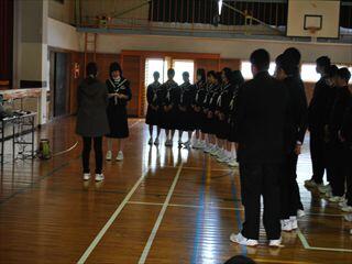 3月11日(金)の4校時、生徒会主催の3年生送別行事が行われました。全校生徒による交流長縄大会、そして、3年生から担任の先生へのメッセージ、また、生徒会のみなさんで作ってくれた、送別ビデオ上映などがありました。長縄大会では、1組、2組に分かれ、跳んだ数を競いました。担任の先生へのメッセージでは、思わず涙を浮かべて言葉を詰まらせるシーンもあり、感動的でした。送別ビデオでは、3年生の懐かしい映像が出てきて、大いに盛り上がりましたね。