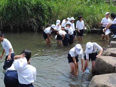 学校の裏を流れている長江川の水質調査を行いました。長江川に生息している生物などを調べました。いろいろな生物と出会い、自然を身近に感じた時間でした。