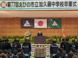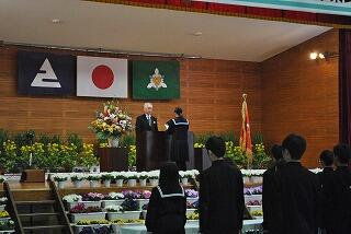 式辞では、卒業生に対して「常に自分をふり返り、明日に向かって前向きに考えられる人になってほしい」とのお願いが、はなむけのことばとして贈られました。