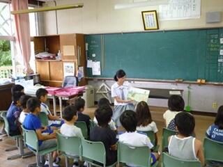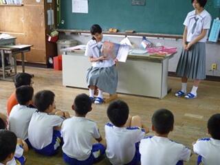 7月4日(金)、3学年生徒16人が加久藤小学校1~4学年生に読み聞かせを行いました。小中一貫教育の取組の一つで、年2回実施しています。中学生は、小学生にしっかり聞いてもらえるように事前に繰り返し練習してきていたので、どの学級でも食い入るように話を聞く児童の姿が見られました。中学生には表現力育成の場として、小学生には中学生への憧れや親近感をもたせる場としてとても有意義でした。