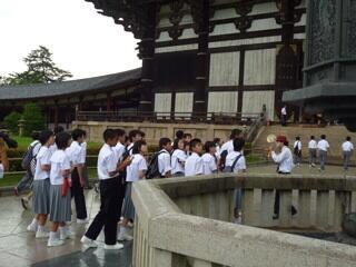その後、奈良公園に行き東大寺を見学し、白鳥神社の赤松の話も聞くことができました。本日は、天候が心配でしたが移動中もほとんど傘を使うことなく移動をすることができ、スムーズな旅行となりました。
