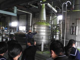 11月16日(火)、1年生は地元加久藤地区にある明石酒造株式会社に行き、工場を見学させていただきました。明石酒造は地元にある焼酎メーカーで「明月」などを製造している酒造会社です。