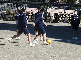 11月26日(金)昼休みに生徒会が主催する、「みんなで遊ぶ日」の取組がありました。今回は、全員でサッカーをしました。みんなで遊ぶ日は、「いじめ未然防止推進校」としての取組の一環で、みんなで遊ぶことでお互いの良さを知り、いじめを許さない雰囲気作りを行うことを目的に、今年度取り組んでいるものです。