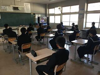 6月4日(金)に2年生が職場体験学習に代わる、起業体験学習の第1回目を行いました。今回は、えびの市起業センターのアドバイザー、飯野高校の先生、宮崎大学の学生の3名(宮崎大学の学生はオンラインで)を招き、起業について学習しました。宮崎大学の学生は本校出身で、現在起業に向けて様々な準備を行っていて、自分自身の体験をプレゼンで紹介してくれました。また、起業センターの方からは、起業とは、起業に大切なことなどを教えていただきました。また、飯野高校の先生からは、飯野高校の生徒が取り組んでいること、これからの社会人として大切なこと、起業に必要なことは社会人として必要なことと重なっていることなどを教わりました。