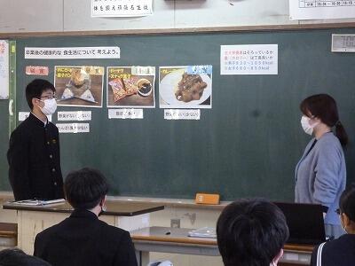 3年生には、「卒業後の健康的な食生活」について、ワークシートを使いながらみんなで考えていきました。