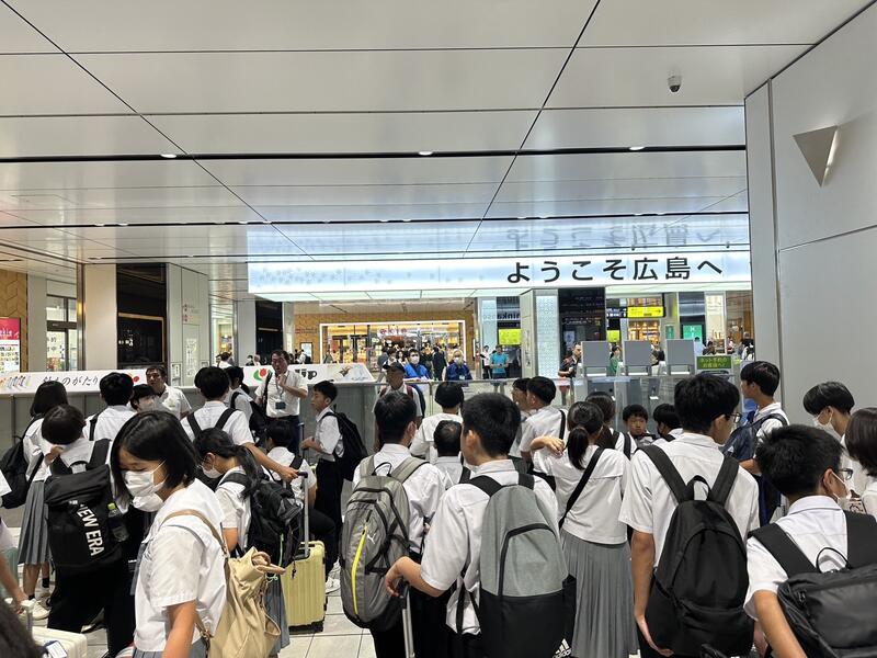 新幹線にのって約2時間、10時48分に広島駅に着きました。これからいよいよ平和学習のために原爆資料館に向かいます。何年か前の県立高校の社会科の入試問題に「なぜ、歴史を学ぶのですか」という問題が出題され、模範解答が「戦争などのあってはならない事件を学ぶことで平和の大切さを知るために学ぶ」とありました。貴重な経験を大切に生かして欲しいです。