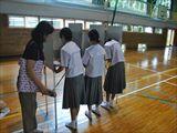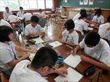 7月29日(水)午前中、3年生43名がバスにゆられ、飯野高校での『えびの市中学校集合学習会』に参加してきました。まず最初は、飯野高校の先生方による授業でした。1組の生徒たちは「英語」→「理科」、2組の生徒たちは「理科」→「国語」に取り組みました。それ以外に、家庭科の授業を受けた生徒や、少し授業内容の難しいチャレンジコースで受けた生徒たちもいました。次は先輩たちとの交流会でした。OBの3年生2人ずつで、1組2組にそれぞれ飯野高校の良いところ(【学習環境の良さ】【部活動に一生懸命】【みんなが仲良し】)を紹介してくれました。その後は部活動見学で、希望する部の活動している様子を見学しました。部によっては、一緒に活動させてもらったところもありました。最後に、吹奏楽部演奏や太鼓部演奏、ファッションショー紹介DVD視聴で終わりました。吹奏楽部演奏も素晴らしかったのですが、太鼓部の演奏は間近で見たために、とても迫力がありました。生徒たちにとっても有意義な半日だったのではないでしょうか?進路選択の一助になったことと思います。