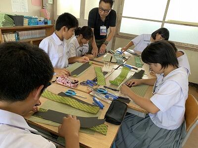 生徒感想には、「畳には空気をきれいにする効果があるなど、今まで知らなかった畳の秘密に驚きました。また、一針一針手作業で縫い上げる、作る人の大変さを知ることができました。いい畳が出来上がったので、自分の部屋に飾って、大切に使っていきたいです。」とあり、職業への理解を深めていたようです。