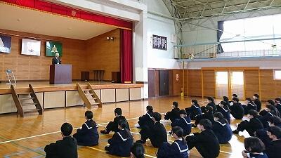 校長のはなし(生徒たちは真剣に聞いてくれました。)