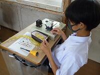和裁は「がま口の財布」、電気回路配線は「配電盤」をそれぞれ一人一個ずつ製作していきました。