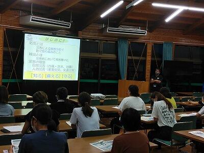 開級式では、中学校長のあいさつや中学校の家庭教育学級長から説明等がありました。その後、えびの市役所 基地・防災課と隊友会宮崎県えびの支部より講師を招き、記念講演として、「防災講座(災害に備えて)」を行いました。