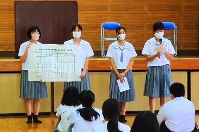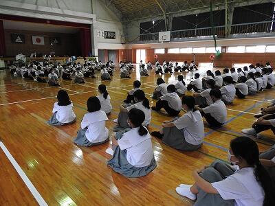 7月14日(木)、16日(土)から実施予定の第67回宮崎県吹奏楽コンクールと第72回宮崎県中学校総合体育大会に参加する生徒及び選手の壮行会が行われました。