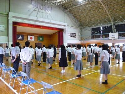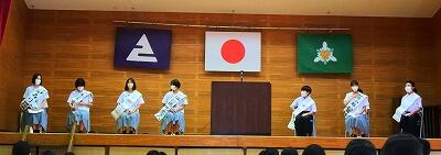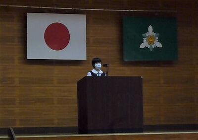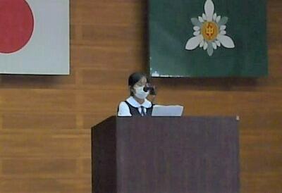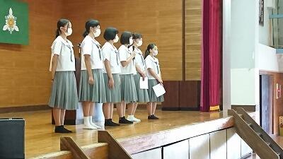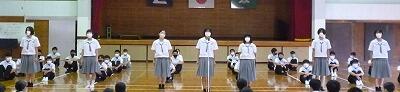 今年度は、新型コロナウイルス感染拡大の影響から、校歌斉唱は行いませんでしたが、加久藤中学校の生徒・職員一同、コンクール及び大会での加久藤中生の活躍を祈っています。