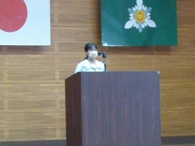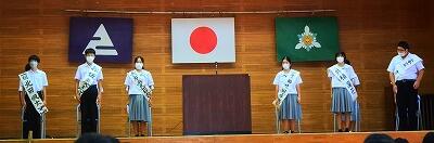 各部代表の決意発表の後、生徒会長、校長から激励の言葉がありました。大会に臨む意気込み等を込めた選手宣誓があり、最後に吹奏楽コンクールに参加する吹奏楽部の演奏披露がありました。
