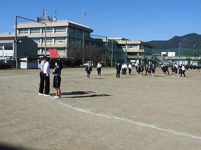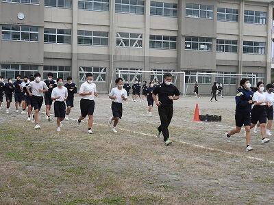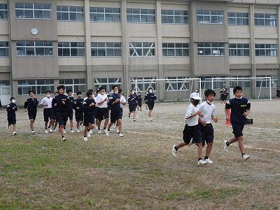 11月26日(土)に実施予定の校内駅伝・持久走大会に向けて、朝の時間に10分間走を行うトレーニングを保健体育委員会が計画し、1日(火)に第一回目が行われました。