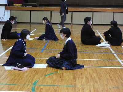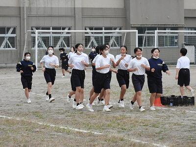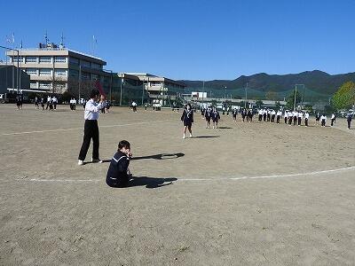 最初にクラスの保健体育委員を中心に準備運動を行い、10分間自分のペースで走りました。体調面で走ることができない生徒もいましたが(走れない生徒は、10分間歩きました。)、生徒たちは自分のペースを守り、10分間走りきりました。