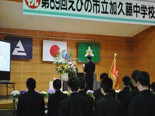 この加久藤中学校での学校生活の中で、「凡事徹底」を心掛け、授業や家庭での勉学に励み、仲間との絆を深めながら、感謝の気持ちを忘れずに、一歩一歩着実に自分の道を歩んでいってほしいです。