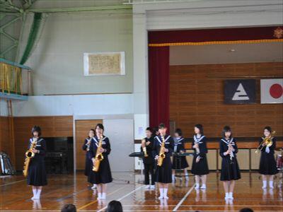 4月15日(水)新入生を対象に、対面式・歓迎行事が行われました。これからの中学校生活が充実したものになるよう、各委員会の取組や学校生活のルールなどについて劇を交えながら分かりやすく説明されました。その後は、部活動紹介が行われ、練習内容や演奏など様々な紹介があり、新入生も充実した時間を過ごせたようです。