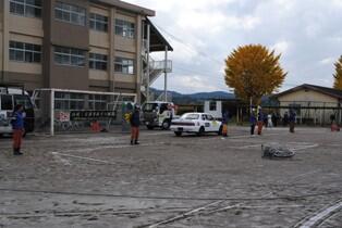 11月25日(月)に飯野中学校の1年生と合同で、交通安全教室(スケアードストレート)が行われました。スケアードストレートとは、恐怖を実感することでそれにつながる危険行為を未然に防ぎ、交通ルールを遵守することの大切さを体感させるため教育方法だそうです。