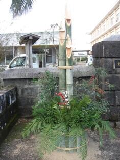 8時に作業を開始し、昼前までかかる大変な作業でした。寒い中、立派で素敵な門松ができあがりました。作業をしていただいたのは、PTA会長、副会長3名、保体委員長、家庭教育学級長です。校長、教頭もお手伝いさせていただきました。