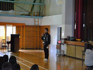 11月18日(水)、本校体育館で小中学校合同教育講演会が開かれました。NPO法人ハートム理事長の「初鹿野 聡」氏を講師に迎え、「レレレのおじさんが地球を救う!」という演題で1時間半お話していただきました。「問題・事件が起こらないための取組」として、初鹿野さんの体験談を含めたユーモアあふれる講演で、学校・地域・家庭の連携のあり方をわかりやすく話していただきました。今回のお話でいただいたヒントやアドバイスを参考にして、子ども達が安心して過ごせる地域にしていけるよう、努力していきたいと思います。