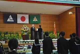 式辞では、卒業生に対して「常に自分をふり返り、明日に向かって前向きに考えられる人になってほしい」とのお願いが、はなむけのことばとして贈られました。