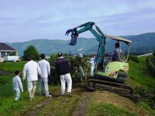 また、前日加久藤中学校OBの方々に、剪定・伐採していただいたプール裏の樹木の片付けも行いました。