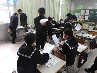 2学期前半最終日の24日(金)4校時。3年1組で社会科の研究授業がありました。