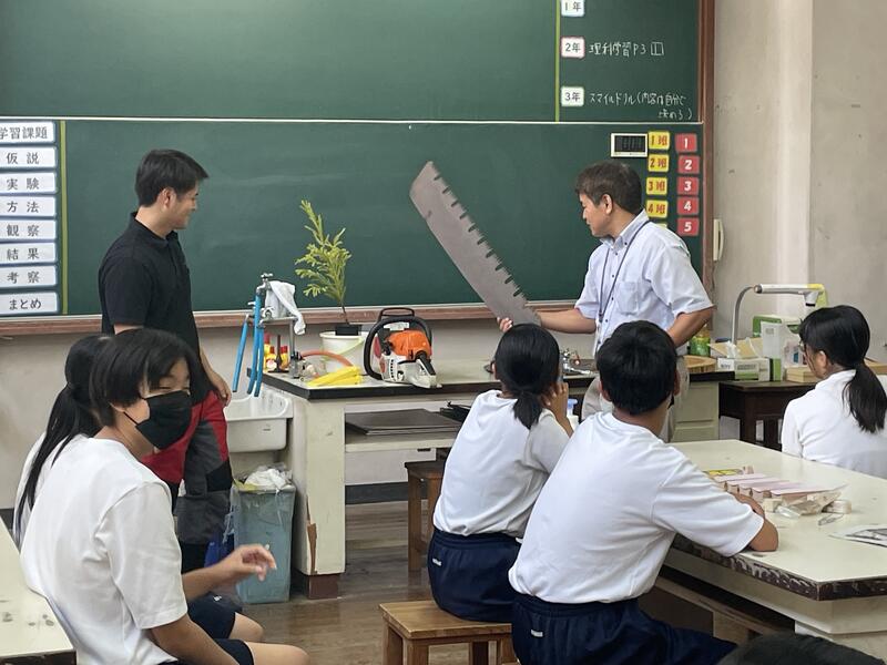 7月5日(金)1年生が講師の先生方を招いてものづくり体験教室を行いました。昔使っていた珍しい大型ののこぎりなどを見せてもらい、現在は小型のチェンソーで作業ができていることや、田の神様を機械を使って削ったりと中々できない体験学習を行いました。この経験を今後の生活につなげていけたらと思います。