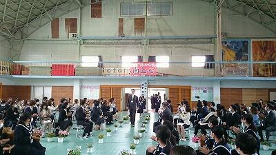校長式辞、教育委員会のお祝いの言葉、PTA会長祝辞、来賓紹介と続き、在校生代表歓迎のことばと続きました。