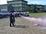 今回は生徒たちに事前に知らせることなく、移動教室も含む通常授業時に行い、より実践的な訓練をめざしました。突然の訓練だったのですが、全体的には落ち着いて行動できていたと思います。えびの消防署から来ていただいた消防職員より、注意するべき点について教えていただきました。生徒だけではなく、職員にとっても臨機応変な判断と行動を考えさせられる、非常に有意義な訓練になりました。