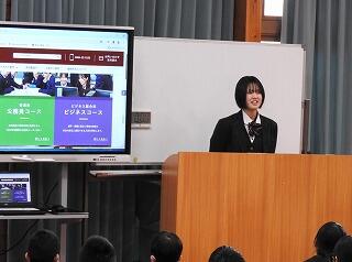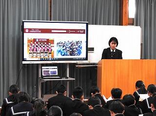 1月23日(火)、1,2年生を対象に、高校に進学した先輩から話を聞き、進路学習の大切さを知り、自主的な進路選択・進路決定につなげる機会となるように、「卒業生の進路に学ぶ会」を行いました。