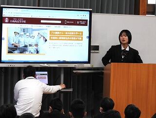 小林西高校普通科3年の先輩を招き、小林西高校の説明や中学校時代にやっておいた方が良いことなどを話していただきました。