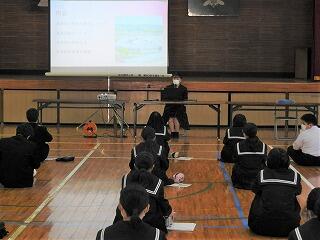 3校の発表の後に、質問タイムがあり、「高校になれるまでどのくらいかかったか。」や「中学校の行事と高校の行事の違いは。」や「中学生の時どのぐらい受験勉強していたか。」などの質問が出されました。中学生からの質問に、丁寧に答えてくれた先輩を見ていると、加久藤中学生の素直さや真面目さに感心させられます。