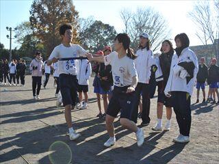 持久走の部は、小学1年生から順に6年生までが校内、校外を走るコース。普段大きい中学生を見慣れているので、一生懸命走る小学生の姿は、とても可愛く見えた。中学生は、部活動を行っている1、2年生に対して、受験勉強で体を動かす機会の減った3年生がどう対抗するかが注目されたが、男子は3年生の柳田義海くんが優勝。女子は1年生の茶園遥加さんが優勝した。