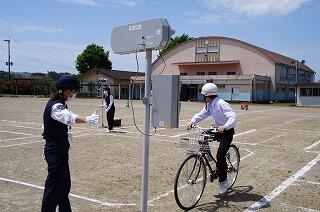 まず最初に交通安全協会の方から自転車の点検の仕方や自転車を運転する際に気をつけることなどについて教えていただき、その後実技指導として生徒達が実際に自転車にのって準備されたコースを運転してみました。