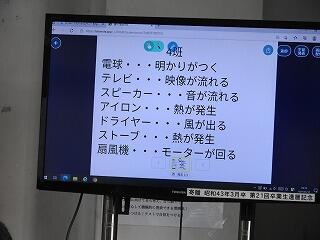 最初に、電気器具の例を個人で考え、その後グループで電気器具とそのはたらきについてロイロノートを使ってまとめました。