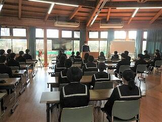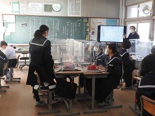 1月26日(水)、私立高校入試の日にあわせて、本校出身で私立高校で学んでいる先輩を招いて、高校についての話を通して進路について考える「卒業生の進路に学ぶ会」を感染症対策を十分行った上で実施しました。