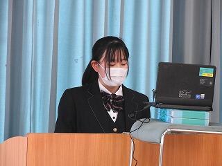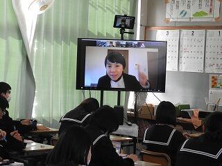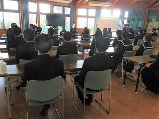 当初予定していた体育館での開催からオンライン形式に変更して実施しました。卒業生と1,2年生が直接ふれあうことはできませんでしたが、画面を通して、卒業生の体験や通っている高校の説明を聞いたり、質問をしたりしました。