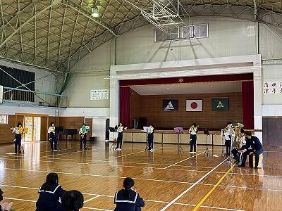 次は、部活動紹介です。準備の間、生徒会役員による○×クイズで加久藤中学校のことが更に分かりました。
