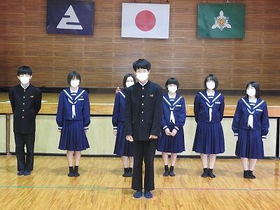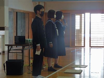 対面式では、校歌を紹介した後、生徒会長が歓迎のあいさつの中で、学校の取組等を紹介しました。