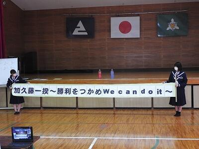 次は、部活動紹介です。準備の間、生徒会役員による○×クイズで加久藤中学校のことが更に分かりました。