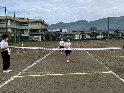男子は3㎞、女子は2㎞、これまでの体育の授業で練習してきた成果を十分発揮して、最後まで一生懸命に走る姿を見せてくれました。