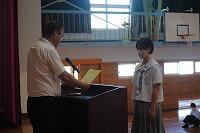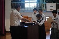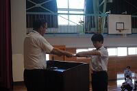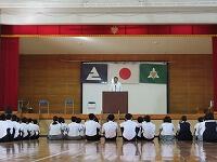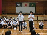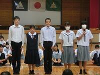 10月16日(水)2学期の始業式が行われました。最初に各学年代表による2学期の抱負が発表され、特に3年生代表は近づいてきた入試に対して万全の状態で臨みたいと力強く発表してくれました。その後、生徒会役員の退任式と任命式も行われ、旧生徒会長が、送別行事で卒業生を送り出すために生徒会役員で時間をかけて準備した思い出を語ってくれた一方、新生徒会長は公約にも掲げていた「タブレットを学校生活で有効に活用する」ことの具体的な取組を発表してくれました。2学期が加久藤中のみんなにとって楽しい毎日になるように頑張りましょう!