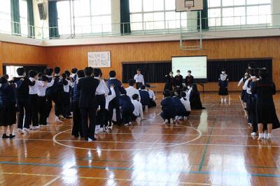 初めに、執行部、学習委員会、生活安全委員会、給食委員会の生徒会役員の生徒から、11月・12月の活動反省および1月・2月の活動計画について示されました。